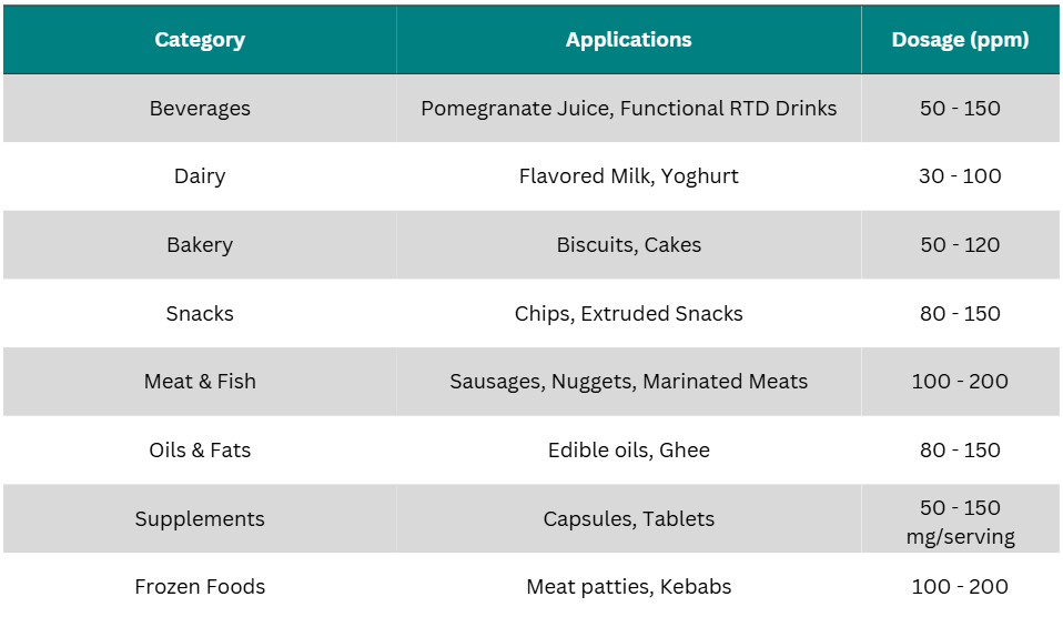 • Sensory Integrity: Punicalagin protects flavor and color in both beverages and foods, ensuring the consumer experience remains consistent from day one to the expiration date.